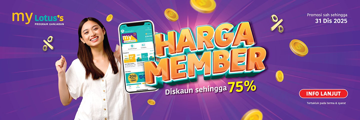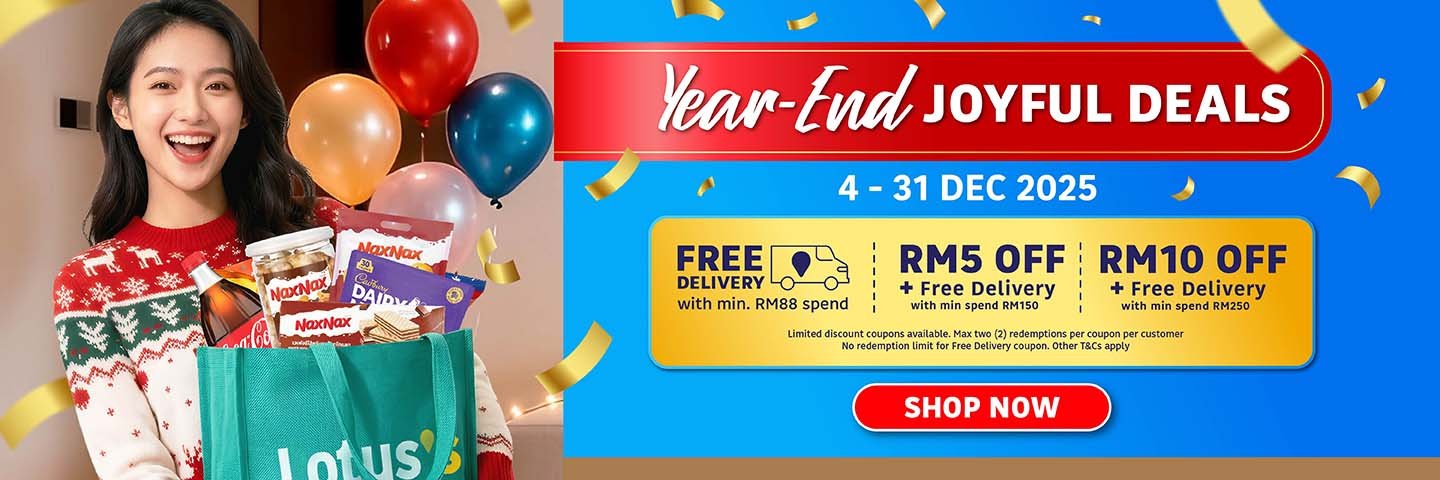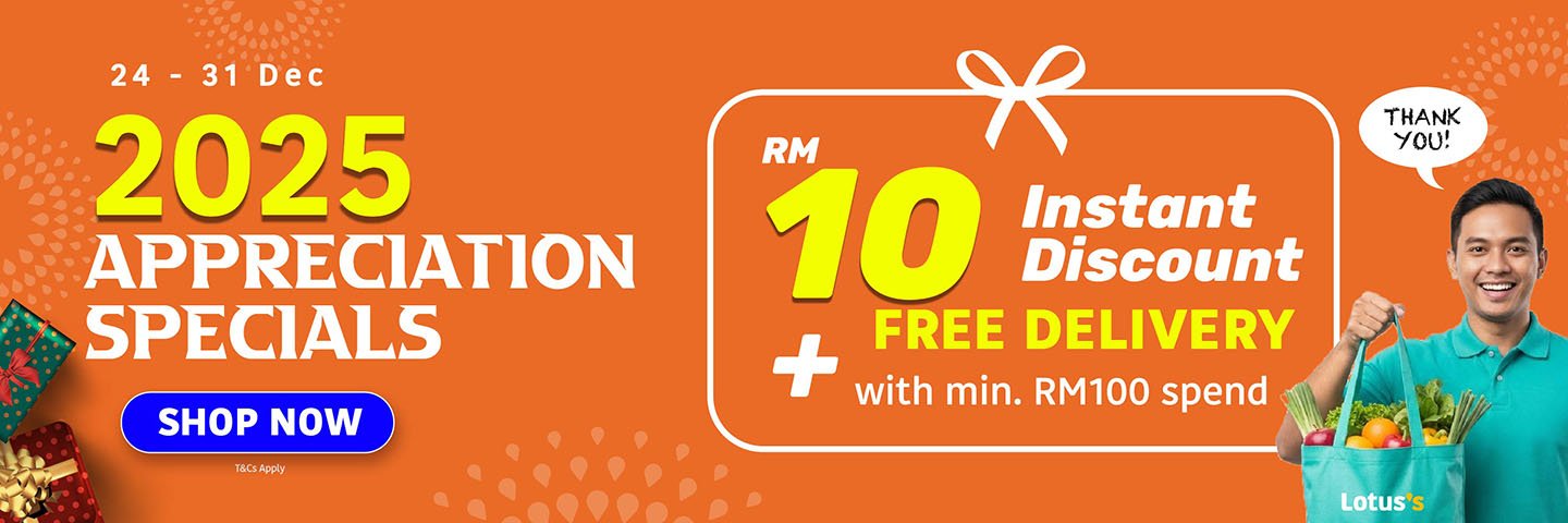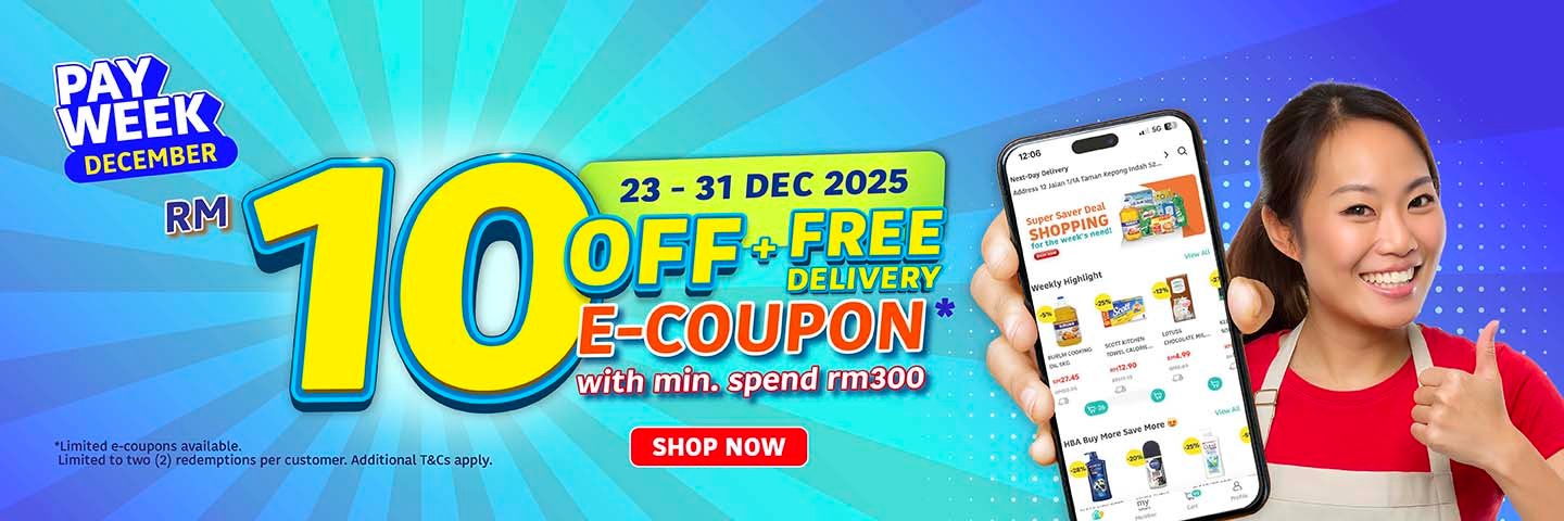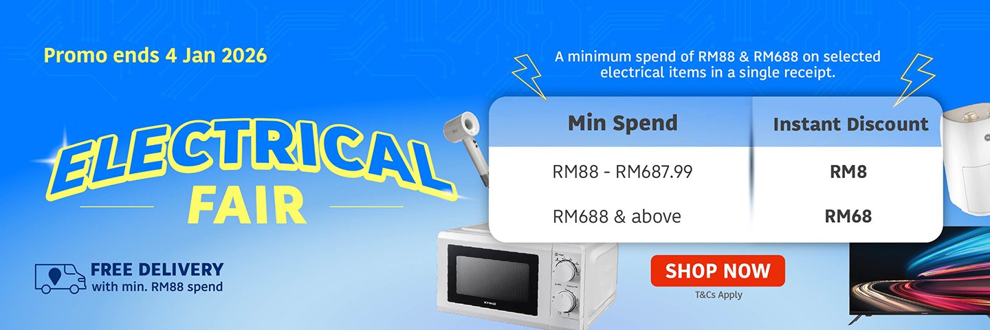 Kasi Spin, Pasti Win! Weekly Catalogue Rewards Catalogue E-Wallet Next Day Delivery Orders The best deals for the week Best-selling new arrivals -20% Quick view Add to cart 100 PLUS ORIGINAL 325MLX28 ₱590.08 Original price was: ₱590.08.₱471.20Current price is: ₱471.20. -19% Quick view Add to cart ANCHOR SLICED CHEESE VALUE PACK 400G ₱4,317.60 Original price was: ₱4,317.60.₱3,477.60Current price is: ₱3,477.60. -30% Quick view Add to cart AYAMAS CHICKEN FRANKFURTER 340G ₱1,476.00 Original price was: ₱1,476.00.₱1,029.60Current price is: ₱1,029.60. -23% Quick view Add to cart BLUEBERRIES 125G ₱159.84 Original price was: ₱159.84.₱122.40Current price is: ₱122.40. -40% Quick view Add to cart BREEZE LIQ LOW SUDS ANTI BAC & COLOUR PROTECT 3.6KG ₱478.40 Original price was: ₱478.40.₱286.08Current price is: ₱286.08. -2% Quick view Add to cart CAP RIAMAS SUPER IMPORT 10KG ₱488.00 Original price was: ₱488.00.₱478.40Current price is: ₱478.40. Festive Highlights 🎅 -29% Quick view Add to cart RESUKA CHRISTMAS BOX ₱111.84 Original price was: ₱111.84.₱79.84Current price is: ₱79.84. -24% Quick view Add to cart MISTER POTATO BBQ CRIPS 125G ₱69.60 Original price was: ₱69.60.₱52.64Current price is: ₱52.64. -50% Quick view Add to cart KINDER JOY T4 GIFT PACK BLUE ₱479.84 Original price was: ₱479.84.₱239.84Current price is: ₱239.84. -25% Quick view Add to cart FERRERO ROCHER T24 ₱702.40 Original price was: ₱702.40.₱527.84Current price is: ₱527.84. -59% Quick view Add to cart CHI FOREST SP/WTR GRAPE DELIGHT 6X330ML ₱383.84 Original price was: ₱383.84.₱158.08Current price is: ₱158.08. -20% Quick view Add to cart 100 PLUS ORIGINAL 325MLX28 ₱590.08 Original price was: ₱590.08.₱471.20Current price is: ₱471.20. Weekly Highlights 👍 -17% Quick view Add to cart LOTUSS ORIGINAL FRIED CHICKEN 750G ₱287.84 Original price was: ₱287.84.₱239.84Current price is: ₱239.84. -17% Quick view Add to cart LOTUSS HOT+SPICY FRIED CHICKEN 750G ₱287.84 Original price was: ₱287.84.₱239.84Current price is: ₱239.84. -25% Quick view Add to cart INDOMIE MI GORENG SPECIAL VALUE PACK 10S ₱127.84 Original price was: ₱127.84.₱95.84Current price is: ₱95.84. -14% Quick view Add to cart FARM FRESH MILK 2L ₱259.20 Original price was: ₱259.20.₱222.40Current price is: ₱222.40. -2% Quick view Add to cart CAP RIAMAS SUPER IMPORT 10KG ₱488.00 Original price was: ₱488.00.₱478.40Current price is: ₱478.40. -40% Quick view Add to cart BREEZE LIQ LOW SUDS ANTI BAC & COLOUR PROTECT 3.6KG ₱478.40 Original price was: ₱478.40.₱286.08Current price is: ₱286.08. Weekly Fresh Deals 🥕 -27% Quick view Add to cart UDANG SEDERHANA (KG)(9085) ₱526.40 Original price was: ₱526.40.₱382.40Current price is: ₱382.40. -27% Quick view Add to cart LOTUSS SPICY CHIC FLOSS 4S (0293) ₱143.84 Original price was: ₱143.84.₱104.80Current price is: ₱104.80. -42% Quick view Add to cart LOTUSS CENDAWAN ENOKI 100G ₱26.40 Original price was: ₱26.40.₱15.20Current price is: ₱15.20. -11% Quick view Add to cart GRAZE FARMS AUS WAGYU ROSTBIFF STEAK 150GM PACK ₱335.84 Original price was: ₱335.84.₱297.60Current price is: ₱297.60. -26% Quick view Add to cart GRAZE FARMS AUS BEEF BURGER PATTY 150G PACK ₱111.84 Original price was: ₱111.84.₱82.40Current price is: ₱82.40. -23% Quick view Add to cart BLUEBERRIES 125G ₱159.84 Original price was: ₱159.84.₱122.40Current price is: ₱122.40. Electrical Deals -44% Quick view Add to cart SHARP CONVENTIONAL RICE COOKER 1.8L KSH188GWH ₱2,544.00 Original price was: ₱2,544.00.₱1,424.00Current price is: ₱1,424.00. -41% Quick view Add to cart PHILIPS 32PHT5678 32IN HD TV ₱12,784.00 Original price was: ₱12,784.00.₱7,504.00Current price is: ₱7,504.00. -19% Quick view Add to cart MAG RAPID AIR FRYER MG-AF4201/AF4203 4.5L ₱1,758.40 Original price was: ₱1,758.40.₱1,422.40Current price is: ₱1,422.40. -32% Quick view Add to cart KHIND MICROWAVE OVEN 20L MW2002 ₱4,240.00 Original price was: ₱4,240.00.₱2,864.00Current price is: ₱2,864.00. -24% Quick view Add to cart ELO HIGH SPEED COOKING BLENDER ELO-MC800 ₱2,718.40 Original price was: ₱2,718.40.₱2,064.00Current price is: ₱2,064.00. -22% Quick view Add to cart ELO EGG/RICE SMART MULTICOOKING POT ELO-MC18U ₱1,438.40 Original price was: ₱1,438.40.₱1,118.40Current price is: ₱1,118.40. Chilling Deals ❄️ -11% Quick view Add to cart VITAGEN LESS SUGAR ASSORT 5X125ML ₱88.00 Original price was: ₱88.00.₱78.40Current price is: ₱78.40. -14% Quick view Add to cart MARIGOLD HL PLAIN MILK 1.89L ₱4,053.60 Original price was: ₱4,053.60.₱3,477.60Current price is: ₱3,477.60. -16% Quick view Add to cart FERNLEAF YOGURT NATURAL 450G ₱1,632.00 Original price was: ₱1,632.00.₱1,365.60Current price is: ₱1,365.60. -13% Quick view Add to cart CP SMOKED CHICKEN COCKTAIL 200G ₱1,896.00 Original price was: ₱1,896.00.₱1,656.00Current price is: ₱1,656.00. -30% Quick view Add to cart AYAMAS CHICKEN FRANKFURTER 340G ₱1,476.00 Original price was: ₱1,476.00.₱1,029.60Current price is: ₱1,029.60. -19% Quick view Add to cart ANCHOR SLICED CHEESE VALUE PACK 400G ₱4,317.60 Original price was: ₱4,317.60.₱3,477.60Current price is: ₱3,477.60.